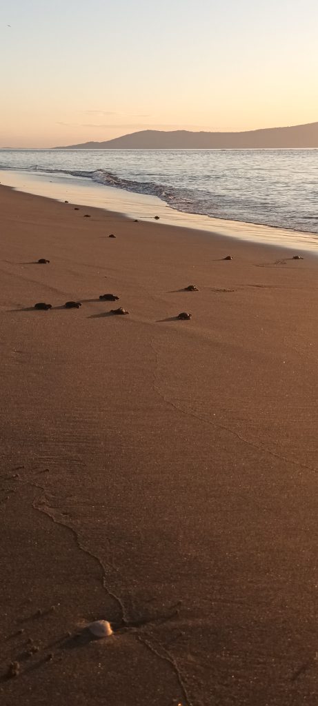 El pasado 22 de noviembre la SERNA a través del equipo de la Dirección General de Biodiversidad (DiBio), departamento de administración, representantes de la oficina regional del pacifico (SERNA) y representantes de PNUD, llevaron a cabo una jornada de conversatorio y colaboración sobre oportunidades y retos en la gestión de los campamentos tortugueros, finalizando con una actividad de liberación de neonatos de (Lepidochelys olivacea)