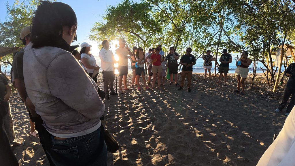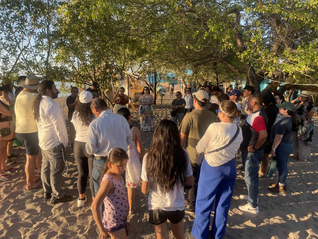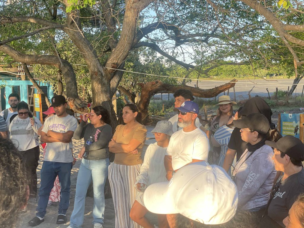 Como parte de la actividad de cierre se tuvo un momento de intercambio con el Señor Jorge Hernández quien compartió con el grupo, parte de la historia del campamento, su objetivo y las principales actividades que ellos realizan para llevar a término el nacimiento de las tortugas marinas, hasta su liberación.